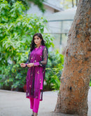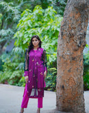 The perfect blend of grace and vibrancy, this dress features a sheer black net top adorned with delicate floral embroidery and a bold pink inner. Designed with cool, breathable fabric,...
