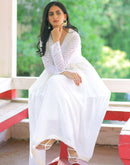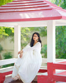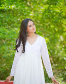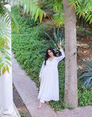Step into the spotlight with this breathtaking white maxi dress, adorned with intricate pearl lacework that shimmers like dew on a flower petal. The delicate embellishments on the sleeves, neckline,...