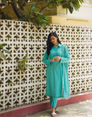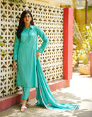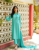 Dive into elegance with our Glacier Blue masterpiece, crafted from airy cotton lawn. Its minimal design features subtle loop patterns on the sides and neckline, exuding sophistication with every stitch....