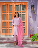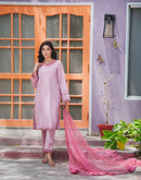Introducing our 3-piece Embroidered Cotton Silk Ensemble, a summer essential adorned with subtle embroidery in a soothing pastel pink shade. Crafted from lightweight and breathable fabric, this ensemble blends minimalism...
