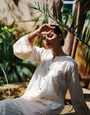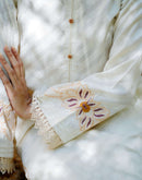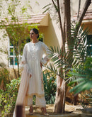 Crafted from pure cotton, this beige 3-piece ensemble embodies elegance and subtlety. Intricate embroidery adorns the dress, striking a perfect balance between minimalism and classic sophistication. Its modern yet traditional...